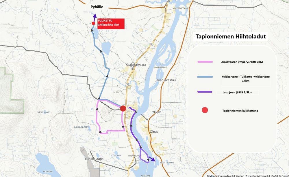 Tässä kartat Tapionniemen talvireiteistä. Talvireitit avataan heti sään salliessa. Tapionniemessä ei tarvitse ulkoilla valtatien reunassa, kyläseuran ylläpitämät talvireitit soveltuvat hyvin kävelyyn tai vaikkapa koiran kanssa lenkkeilyyn!